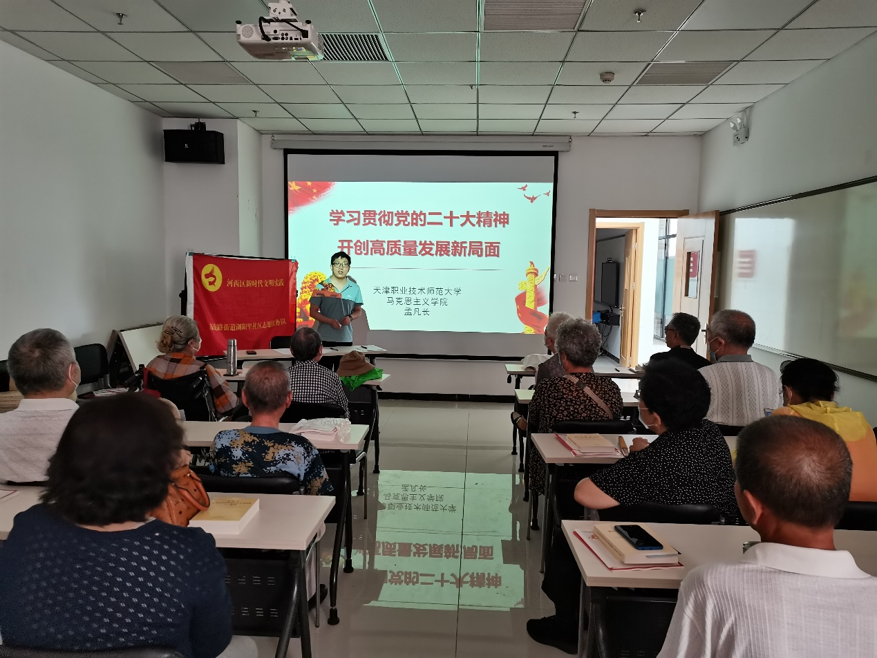 【通讯员:刘欣】为深入学习宣传贯彻党的二十大精神,全面贯彻习近平新时代中国特色社会主义思想,推动党的创新理论成果在基层落地生根,近日,河西区委党的二十大精神宣讲团“小分队”成员、公司政治人才、永利集团3044教师孟凡长受邀为河西区友谊路街道浏阳里社区作党的二十大精神专题党课宣讲,社区党员代表聆听了党课。