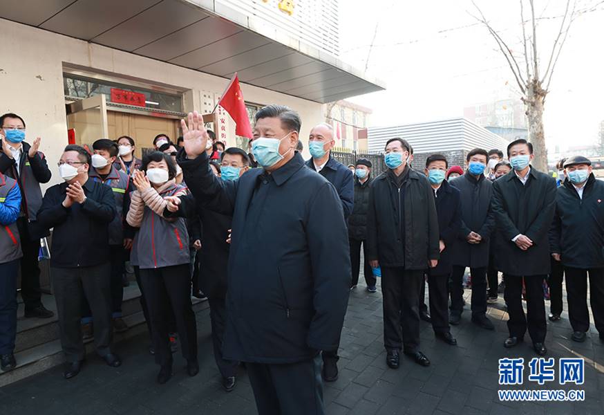 210日,中共中央总书记、国家主席、中央军委主席习近平在北京调研指导新冠肺炎疫情防控工作。这是习近平在朝阳区安贞街道安华里社区,了解基层一线疫情联防联控情况。新华社记者庞兴雷 摄