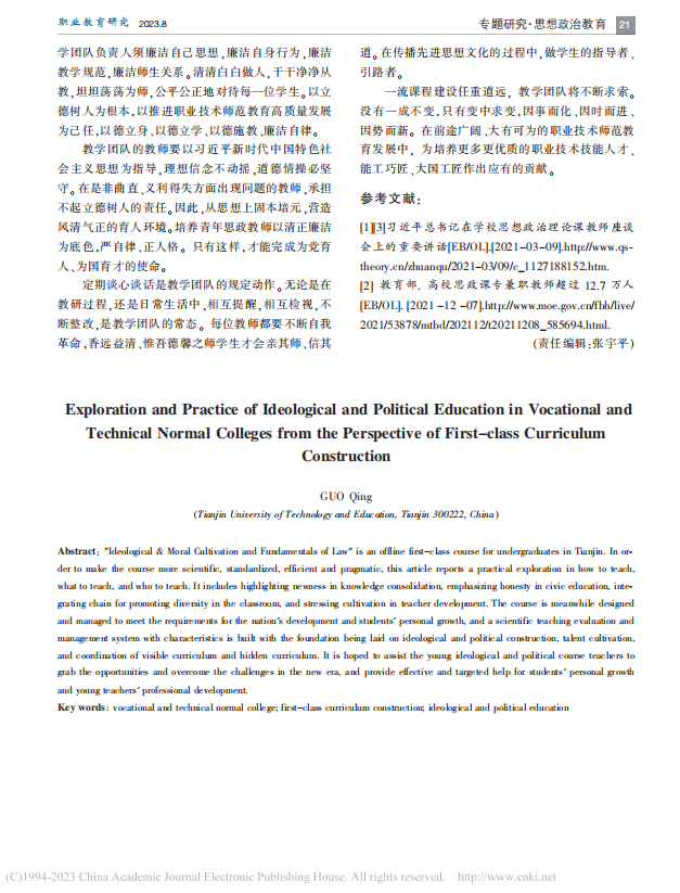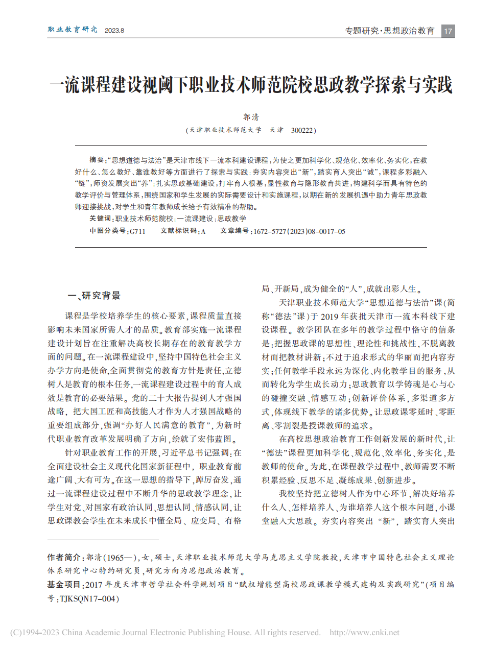 本网讯【通讯员 刘欣】日前,《职业教育研究》以“一流课程建设视阈下职业技术师范院校思政教学探索与实践”为题,报道公司天津市线下一流本科建设课程。